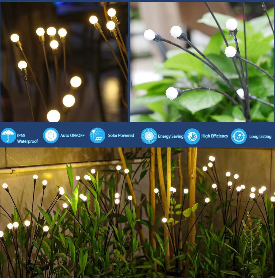 The newest and most unique solar firefly lights on the market. Our solar swaying lights vary in wire length, creating a more layered LED appearance. Featuring highly flexible wires and heavy-duty bulb bases, these solar garden firefly lights allow greater flexibility and swinging angles. When the wind blows, the lights sway gracefully, just like real fireflies dancing in your yard.